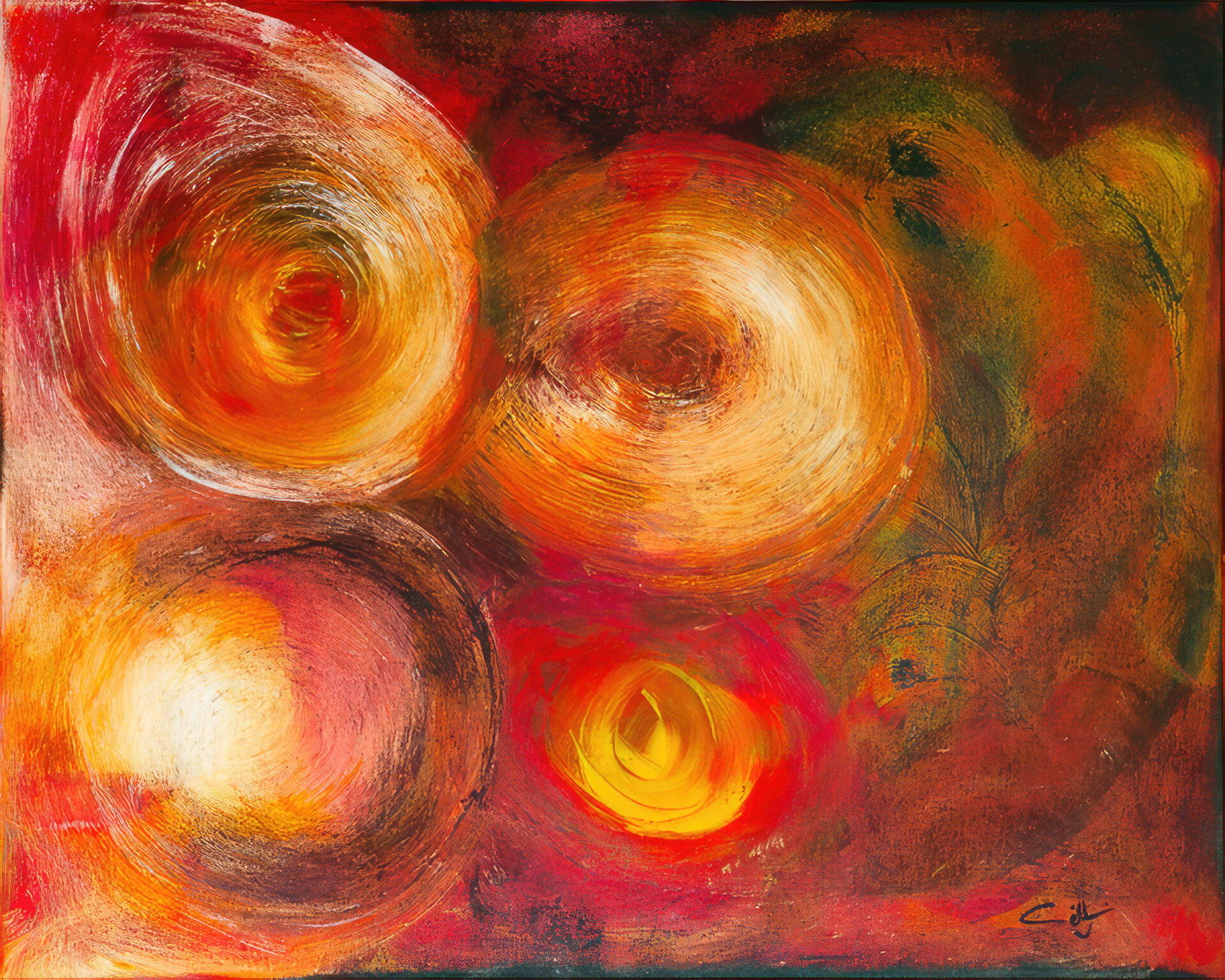 Die meisten meiner Bilder sind wild, unruhig, bunt und leuchtend. Fast immer male ich abstrakt, viele Bilder haben keinen Titel, manche erhalten ihn erst nachdem sie fertiggestellt sind. Ich arbeite immer mit Acrylfarben auf Leinwänden, meist auf dem Tisch oder am Boden, selten an der Staffelei. Neben den Pinseln verwende ich Spachteln, Rollen, Stoffreste oder einfach meine Hände…. Was für ein Traum t……….